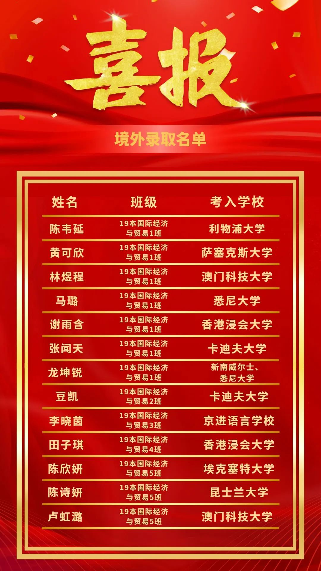 境内升学名单