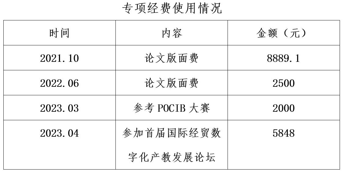 在团队建设过程中,本学科团队高度重视专项经费的管理与使用,确保专项经费的使用符合规定,并及时进行审计和报告。专项经费主要用于论文版面费、参加学术会议、组织员工参加学科竞赛等方面。严格按照计划进行经费使用,确保了经费的合理分配和有效利用。