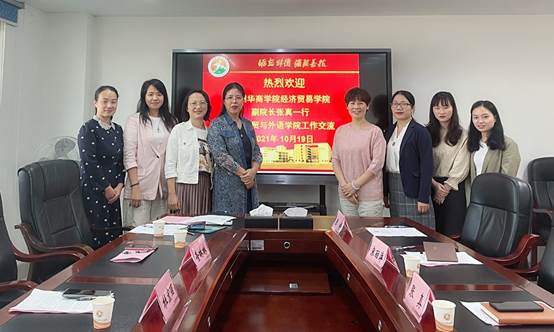 2021年10月19日上午,伟德国际1946经济贸易公司副经理张真副教授、国际商务教研室主任唐清萍老师及国际商学系教师宋丽萍老师和明小晴老师一行四人赴广东科贸职业公司进行交流学习,在两校相互交流探讨的过程中,增进了校际友谊,促进了两校合作。