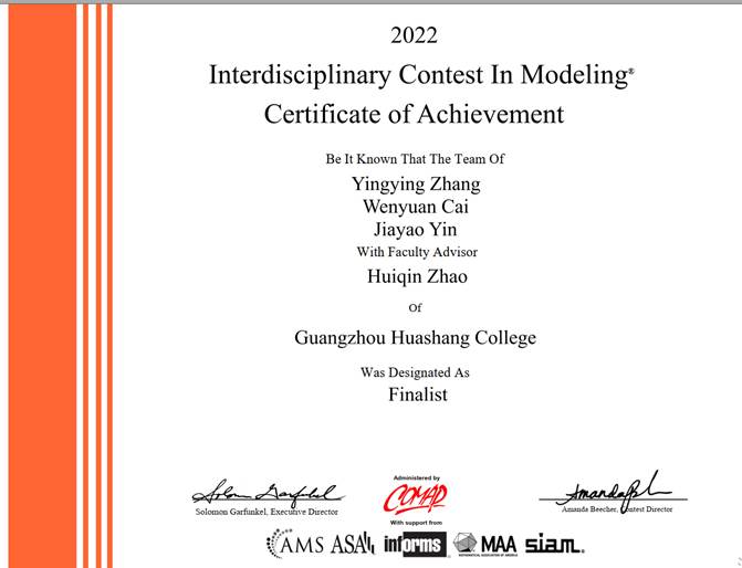 喜报︱经济贸易公司教师指导员工在美国老员工数学建模竞赛中荣获F奖(特等奖提名)