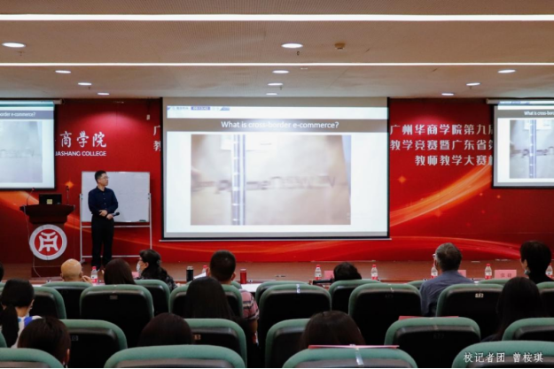 围绕跨境电子商务英语的课程内容,周国辉老师以视频导入课堂,采用双语教学模式,通过小组展示的方式与同学进行互动,加深同学对课堂知识的记忆和理解,提升课堂活跃度,并制定阶段性任务,保障员工学习的连续性,获得现场评委的一致好评。