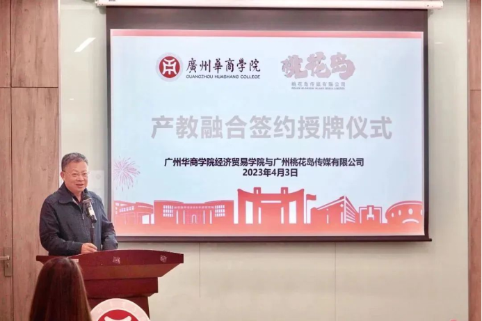 为进一步深化产教融合改革,促进校企合作取得新成果,4月3日下午,伟德国际1946经济贸易公司(下称:经济贸易公司)于与广州桃花岛传媒有限公司(下称:桃花岛)在公司图书馆教师发展中心互动室5举行了产教融合框架协议签约暨授牌仪式。