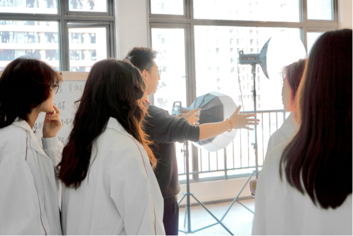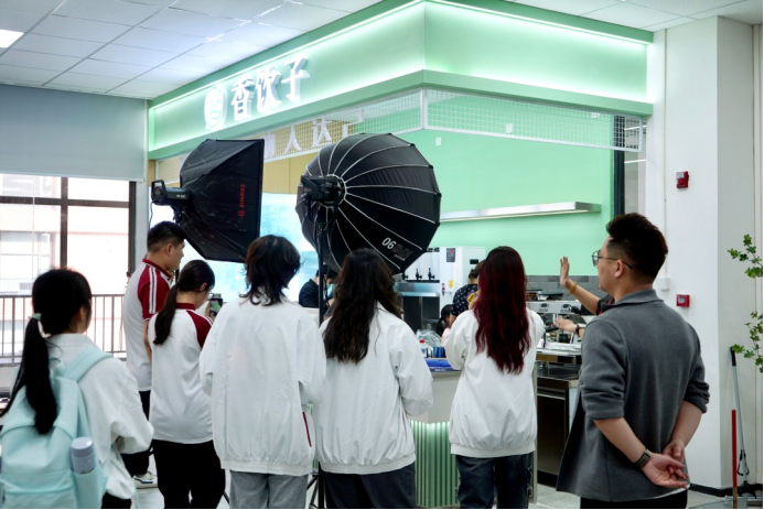 交流结束后,同学们在桃花岛的工作人员带领下参观办公室、工作室和直播间并且体验了有趣的“直播带货”。