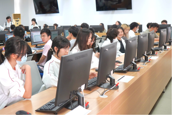 对于四会校区的新生们来说,增城校区的一切都是新鲜有趣的。桃花岛之旅结束后,宋元跃老师、曹维老师和曾庆威老师带领同学们前往跨境专业相关课程的实验室观摩,与师兄师姐们一同上课学习,提前了解专业实践课程,感受增城校区浓厚的学习氛围。