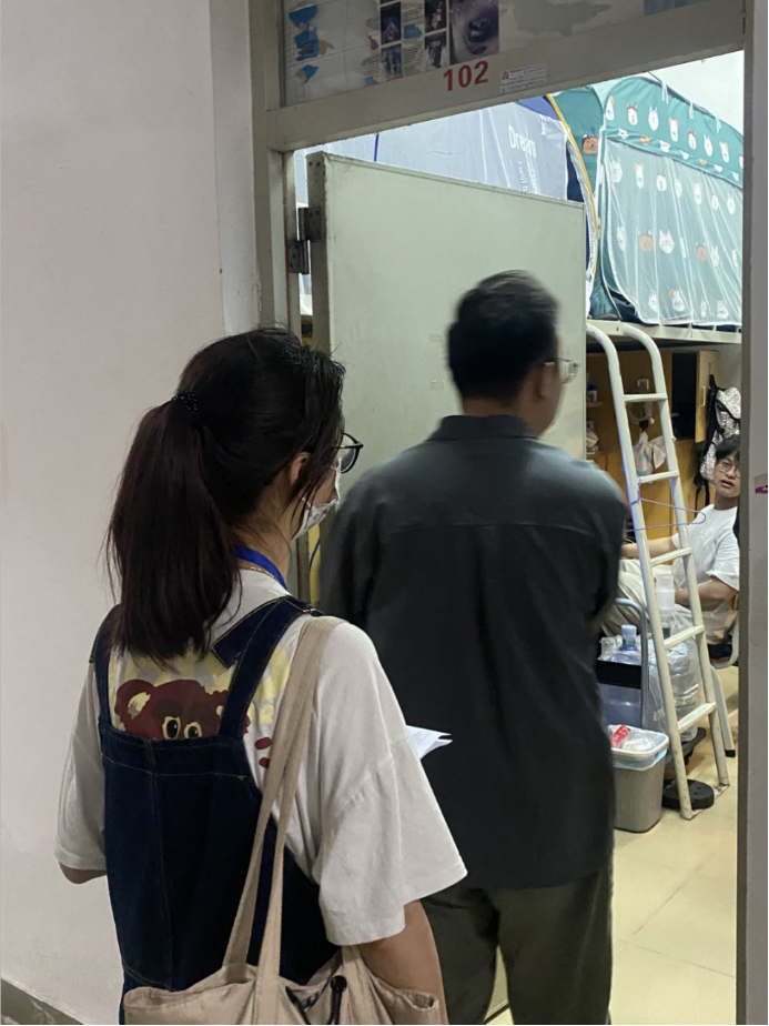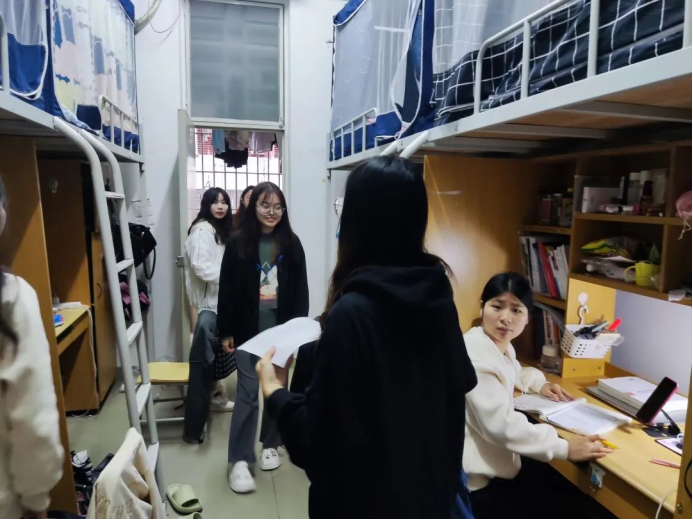 本次宿舍安全纪律检查工作人员按计划以小组形式展开,各小组到相应的宿舍楼进行检查工作。
