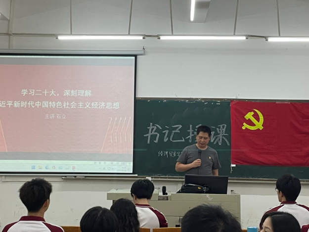 石立老师以“学习二十大,深刻理解习近平新时代中国特色社会主义经济思想”为主题,与同学们解析党的二十大报告中的经济思想。他围绕党的二十大报告中的“加快构建新发展格局,着力推动高质量发展”部分,进行深度解析,并分析了党的二十大报告中的推动经济的举措。