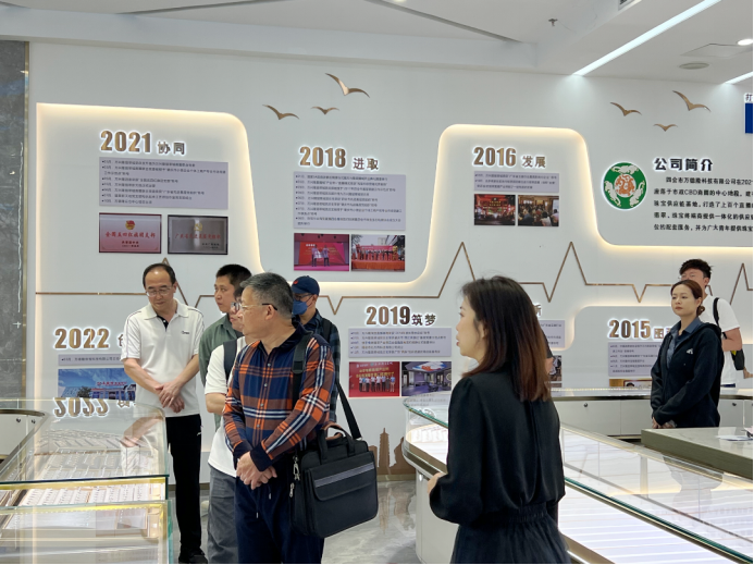 上午十点,李广明经理一行走访四会市万德隆珠宝公司。万兴隆翡翠城党委副书记吴丽丽简要介绍了四会市珠宝玉器行业、万兴隆翡翠城的发展历程和万兴隆翡翠城首创的“产业带+“的模式在电商直播产业对销售升级转型后的全貌、项目的全新定位和未来的运营方向。
