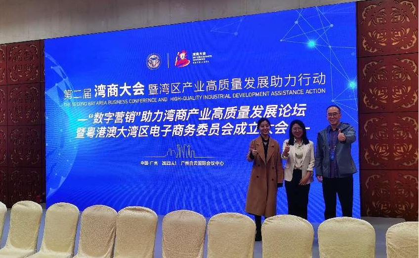 第二届湾商大会暨湾区产业高质量发展助力行动于2023年4月1日,在广州白云国际会议中心举办。大会以“新时代、新机遇、新动能”为主题,以“助力湾区产业高质量发展”为主线,突出湾商创新力、创造力,聚焦湾商新动能,体现中国式现代化的湾商责任与担当。本届大会是在省、市政府有关部门指导和支持下,在立白、广药、华商教育、红八方、红海人力、唯品会、科大迅飞、瑞松智能等近百家上市公司、行业龙头、独角兽企业及香港全港各区工商联、澳门电子商务协会、澳门数字中国科技联盟、省机器人协会、省广告协会、省品牌促进会等大湾区近百家知名协会的积极响应和深度参与下,由第二届湾商大会组委会主办、广州市粤港澳大湾区经济文化促进会牵头承办。经济贸易公司跨境电子商务专业的李伟教授、曹维老师、张嘉欣老师、潘锦文老师参加了本次大会和“数字营销助力湾商产业高质量发展”论坛。