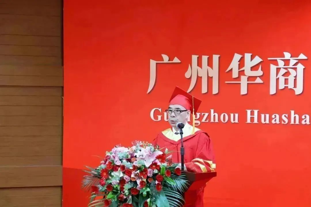 广东财经大学党委常委刘祖华副书记代表广东财经大学对华商公司毕业生表示热烈的祝贺和诚挚的祝福。他总结了华商公司建校十八年来所取得的各项成就,对公司教育事业的高质量发展表示肯定。同时,他深情寄语同学们:一、勇于担当,心怀家国,坚定理想信念,为中华民族的伟大复兴贡献力量;二、勤于学习,厚积薄发,不断吸纳知识,锤炼过硬本领,在开拓进取中创造非凡业绩;三、奋力拼搏,笃行不怠,始终保持以梦为马、刚健有为的前进姿态,让青春之花在祖国和人民最需要的地方扎根绽放。