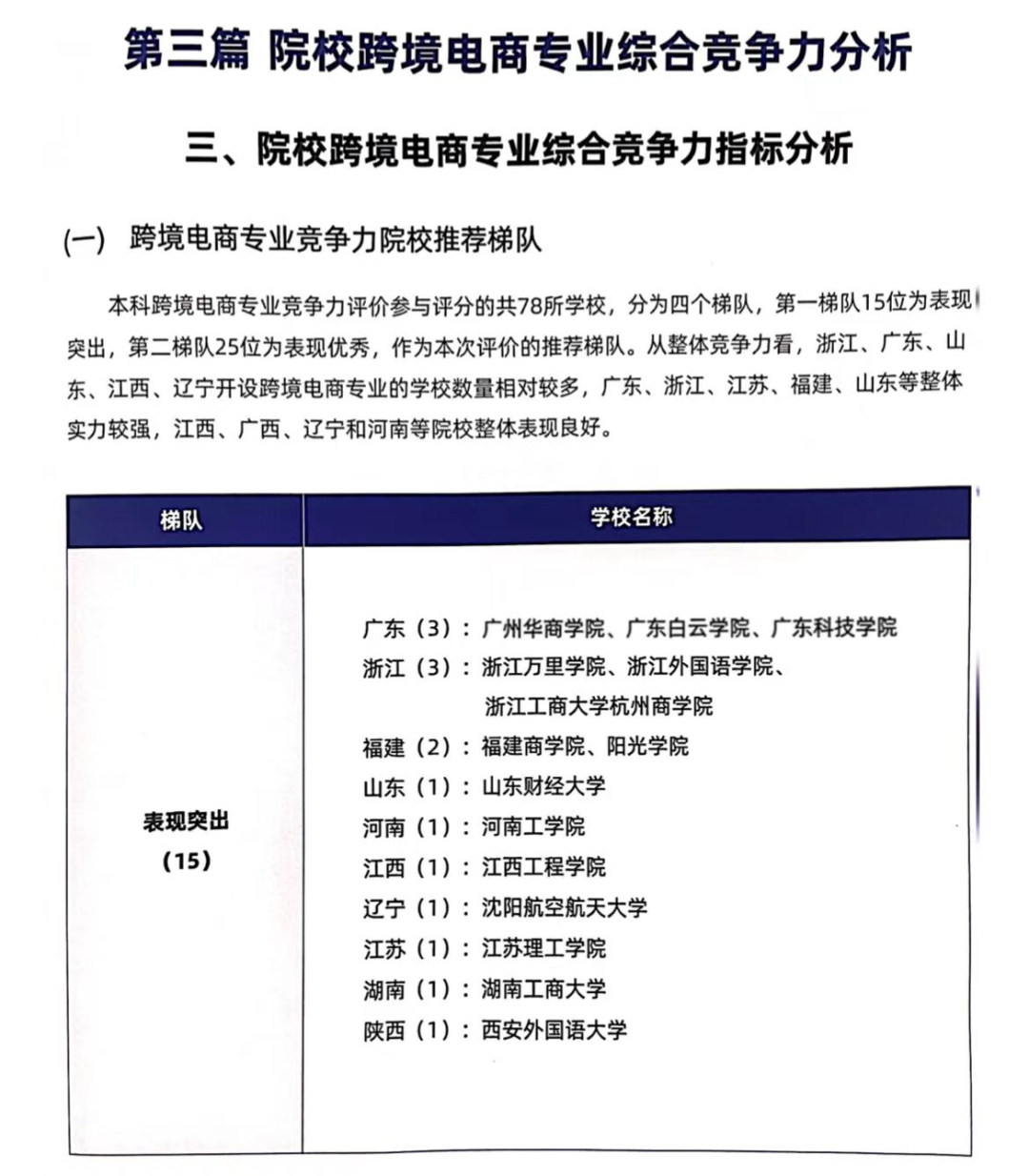 目前,全国开设跨境电子商务专业的本科高校共78所,开设该专业的高职院校有300余所,覆盖28个省市自治区。其中,广东省开设跨境电子商务专业有本科高校7所和高职院校42所。经综合评价,参与本科跨境电商专业竞争力评分的78所高校,根据评分划分为四个梯队,第一梯队15所高校为表现突出,第二梯队25所高校为表现优秀,作为本次评价的推荐梯队。广东省跨境电子商务专业表现突出的本科院校共3所,伟德国际1946经济贸易公司的跨境电子商务专业荣登榜单,因专业竞争力表现突出,进入第一梯队!
