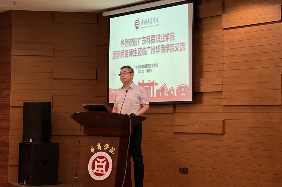 广东科贸职业公司商贸公司关善勇经理首先对华商经贸公司师生的热情接待表达了感谢,并介绍了广东科贸职业公司及其商贸公司的发展、校区设置、专业设置,教学成果等方面的具体情况。特别是在公司建设中提出着力于四个提升:专业特色提升、课堂教学水平的提升、产教融合水平的提升以及社会服务方面的提升。