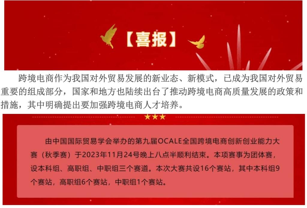 上一条:喜报 | 公司在全国老员工数字贸易综合技能大赛(数字贸易直播方向)总决赛取得佳绩 下一条:喜报|经济贸易学子在第二届数贸杯·全国老员工数字贸易综合技能大赛(数字贸易计划书方向、大数据分析方向)现场路演总决赛取得佳绩