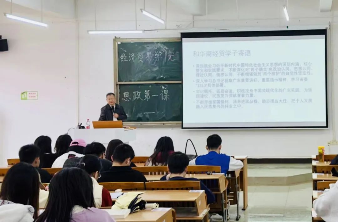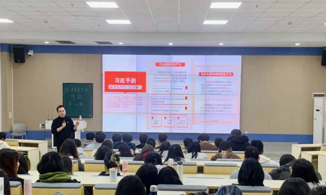 2024年3月5日,经济贸易公司李广明经理在广州校区励志楼C402为经济贸易公司2021级员工讲授以“踔厉奋发,学好本领,积极投身高质量发展的广东实践”为主题的思政第一课。首先,李广明经理以“人勤春来早”开篇,带领同学们学习全省高质量发展大会相关内容,引导同学们学习领会“以高质量发展推进中国式现代化”的深刻内涵。生产力是社会发展的最终决定力量,推进现代化建设最重要的是发展高度发达的生产力。习近平总书记强调发展新质生产力是推动高质量发展的内在要求和重要着力点。新质生产力的特点是创新,关键在质优,本质是先进生产力。
