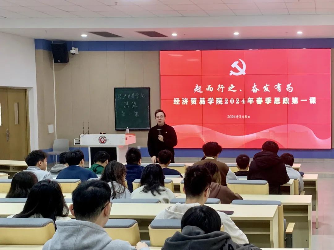 3月8日,经济贸易公司党委副书记宋元跃老师在肇庆校区8号楼109讲授以“起而行之,奋发有为”为主题的思政第一课,2022级、2023级员工共同参加此次课程。