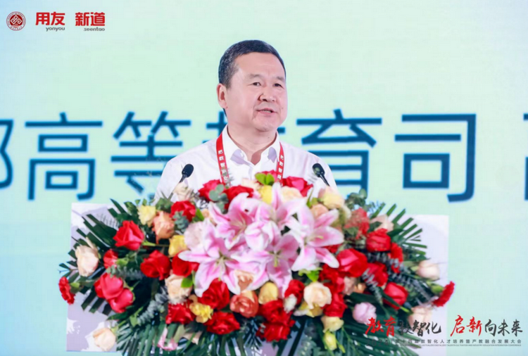 25日上午,教育部高等教育司副司长武世兴出席大会并致辞。他对深化产教融合,加强数智化人才自主培养提出几点要求:一、要加快培养数智化拔尖创新人才;二、要探索构建数智化人才自主培养体系。三、要深化数智化产教融合新模式。四、要积极打造数智化公司产品新形态。武世兴在会上指出,要锚定教育强国目标,坚持效果导向、目标导向,深化产教融合、科教融汇,大力推进新时代高校数智化拔尖创新人才培养,为加快教育强国建设,以中国式现代化全面推进中华民族伟大复兴作出新的更大贡献。