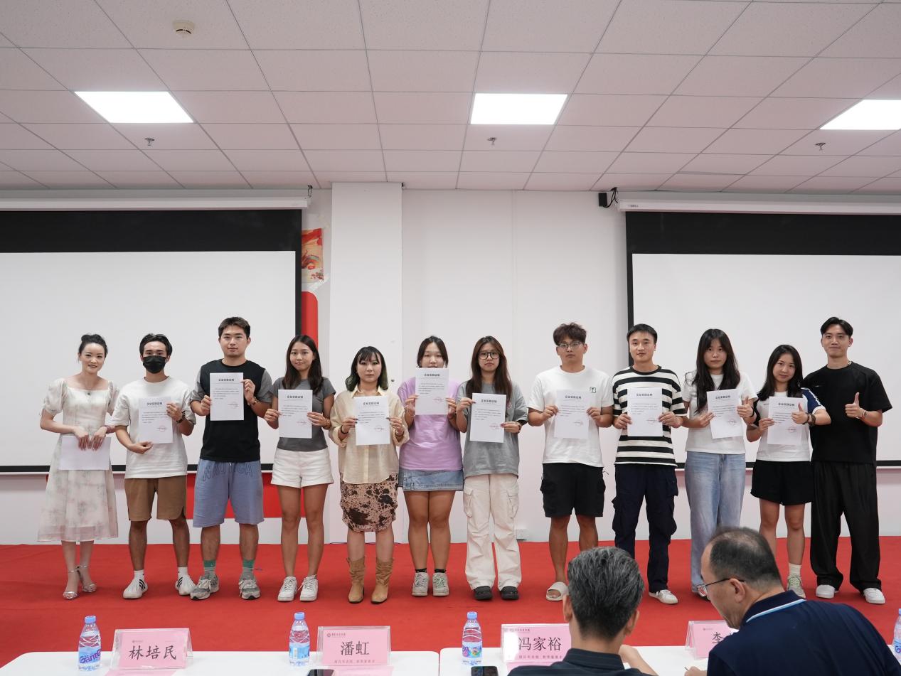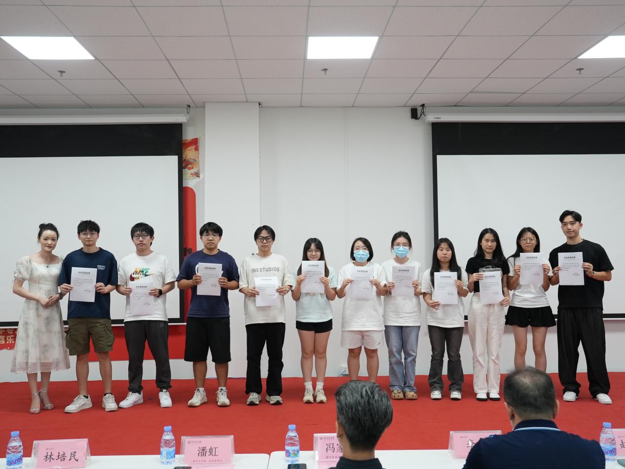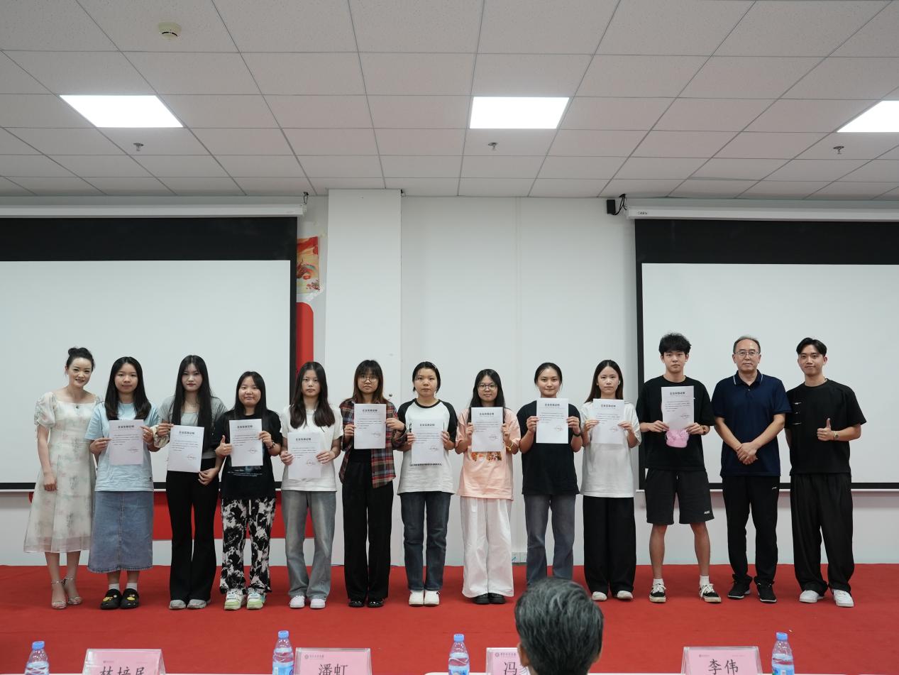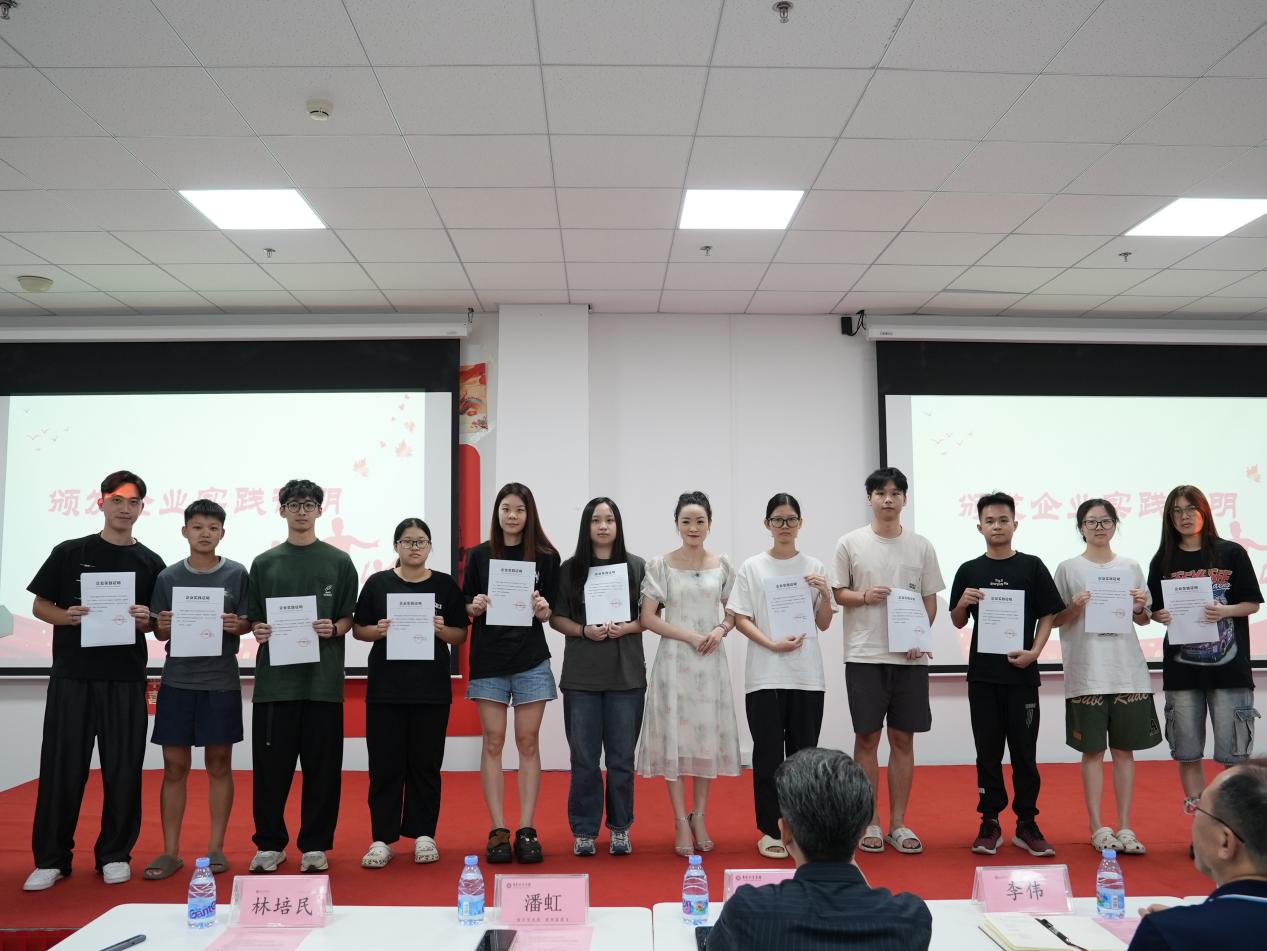 随后由数字经贸公司副经理李伟教授、广州桃花岛电商咨询有限公司CEO冯家裕总经理以及校企合作办公室主任潘虹以及跨境电商工作坊运营导师林培民为员工颁发企业实践证明,以表彰他们在实训过程中的优异表现。