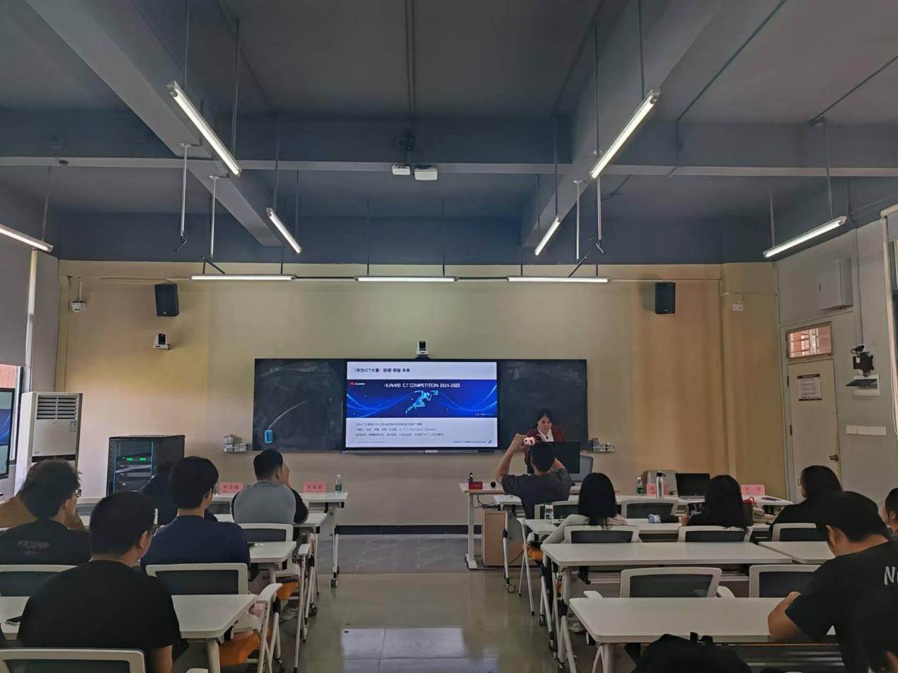 活动中,周星彤讲师首先介绍了大数据在当前企业决策支持中的核心作用,通过具体案例分析,展示了大数据如何帮助企业精准定位市场趋势、优化供应链管理以及提升客户体验。她强调,数据已成为企业的核心资产,有效挖掘和利用数据价值是实现业务增长的关键。紧接着,她介绍了人工智能技术的最新进展,特别是机器学习、深度学习等技术在风险评估、预测分析以及智能化运营等方面的应用,生动诠释了AI如何驱动企业创新和转型升级。随后,齐燕经理详细地向同学们阐述了华为ICT大赛的背景、宗旨以及历届赛事的精彩瞬间。此次华为ICT大赛有公司经济统计系承办,经济统计系将全力为参赛员工提供良好的备赛环境和资源支持。齐经理强调了参赛对于同学们专业技能和实际操作能力的提升作用,以及在未来就业市场上的竞争力。她鼓励同学们充分利用这次机会,积极参与到大赛中来,通过实战锻炼自己,拓宽视野,为个人成长和公司荣誉贡献力量。