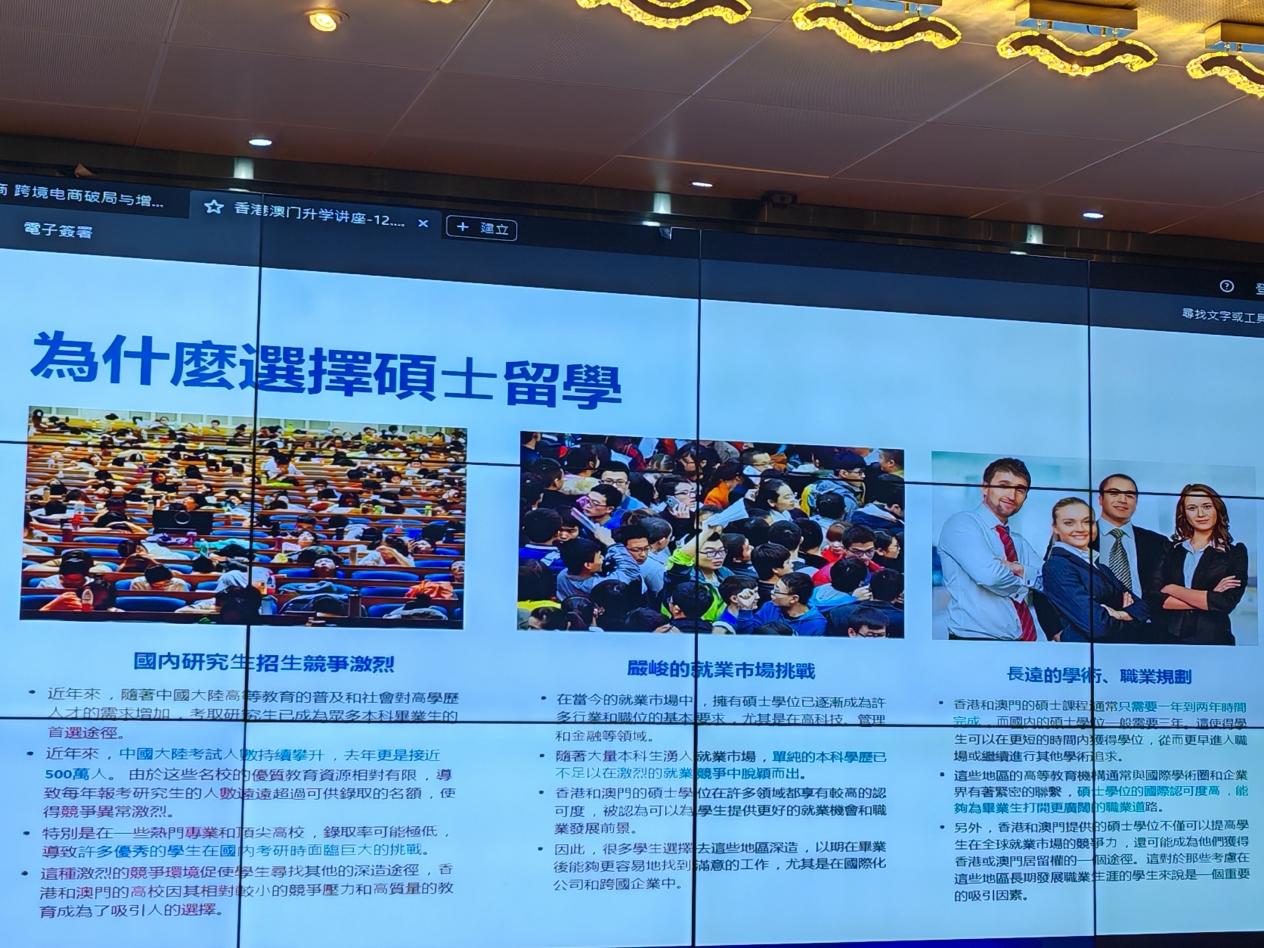 员工们还聆听了在教育和升学指导领域具有丰富经验和专业知识的赖老师(Alex Lai)主讲的港澳名校研究生升学指导课程,该课程为他们规划未来升学路径提供了极具价值的策略与建议。