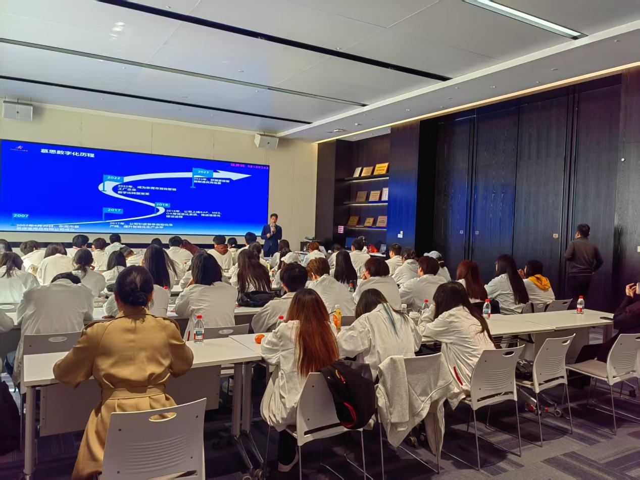 最后来到讲座环节。讲座由慕思集团集成供应链数字化总监暨数字化工厂开创者李敬光介绍公司规模与发展、企业文化、数字化转型的背景(企业遇到的瓶颈)、数字化转型的相关举措以及数字化转型后所取得的成效。在此环节,师生共同探讨在科技发展迅猛的当下,数字化需求的岗位及岗位特点,让员工受益匪浅。