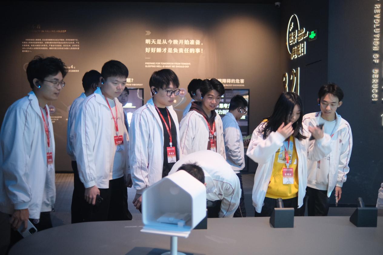 研学第三环节体验高科技博物馆。此环节专业讲解员价绍了六⼤主题篇章,并通过解构艺术、结合光影艺术,让师生在参观体验中既感受科技的迅猛发展,也接受健康睡眠⽂化熏陶,重视健康,养成良好睡眠的习惯。