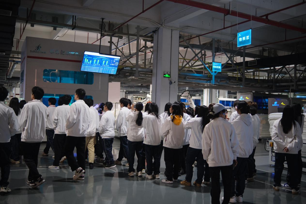 研学第四环节参观慕思数字化工厂。在这个环节中,师生深度体验到慕思的智能制造、自动化生产与实时大数据看板等企业前沿技术应用场景。通过现场慕思专业人员讲解,让师生深刻了解到产品各部件智能化组合与包装的流程,彰显制造工艺流程的智能化新变革,更加深了师生对产业数字化转型的底层逻辑认知。