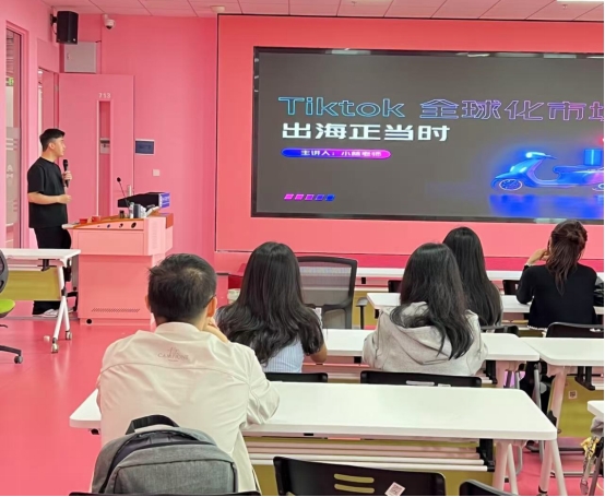 桃花岛跨境工作坊负责人林培民老师以“跨境电商现状与TikTok实战”为主题,结合东南亚美妆、欧美家居等爆品案例,剖析“内容种草+直播转化”的跨境新玩法。“TikTok是年轻一代的‘跨境购物车’,掌握短视频创作与直播互动是未来人才的核心技能!”林老师的分享让员工直呼“打开了新世界”。