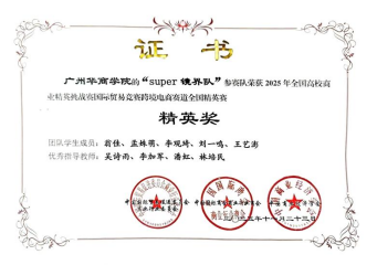 本届全国精英赛于2025年11月20日至23日在广东汕头举行,吸引了来自全国近500所高校、5000余支队伍同场竞技。赛事规模大、专业性强、竞争激烈。比赛过程中,“super镜界队”紧扣跨境电商真实业务场景,立足国际市场需求变化,系统开展市场调研与数据分析,科学研判海外消费趋势,精准定位目标市场,形成了兼具创新性与可操作性的选品方案和运营策略。在项目路演、产品展示及专家问答等多个环节中,团队思路清晰、论证充分、表达规范,赢得了评委和行业专家的一致认可,最终在全国总决赛中取得优异成绩。