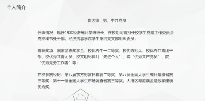(2)思想品德:多参加校内外志愿活动以及思政类活动,敢于去参评思政类奖项或称号。在日常生活中乐于助人,多多与同学们交流。