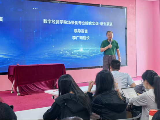 在结营仪式上,伟德国际1946李广明经理首先向所有参与工作坊的同学表示了热烈的祝贺。他充分肯定了本次实训取得的成果,并鼓励师生们积极拥抱数字时代的快速变化,勇于创新,将所学知识转化为解决实际问题的实践能力,为数字贸易产业的繁荣发展贡献自己的智慧与力量。李经理特别勉励同学们:“要珍惜这次难得的学习与实践机会,它不仅是你们简历上的一笔,更是你们职业能力的一次淬炼。希望你们能将实训中的收获内化为自身的核心竞争力,未来在广阔的数字化舞台上大展宏图。”