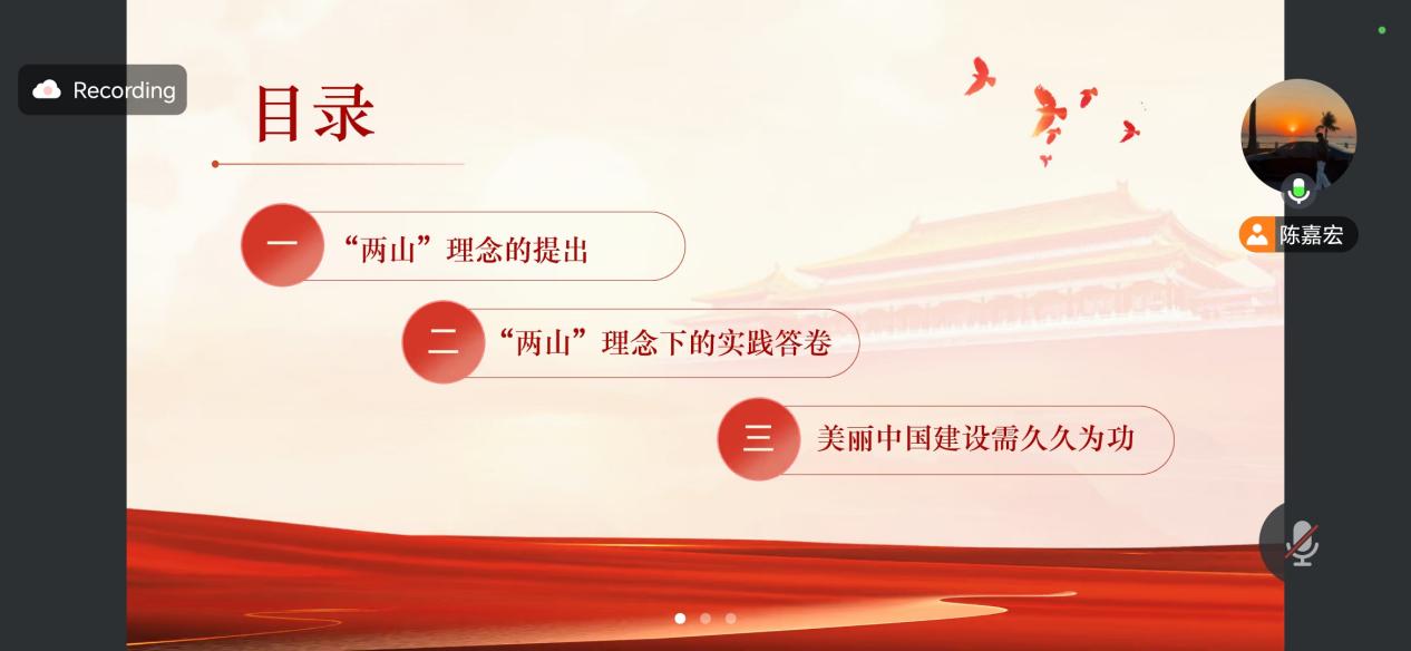 数字经贸公司第一员工党支部第一党小组以感知生态之变,守护绿水青山为主题召开了党小组会议,分为三个部分展开学习,共同学习了有关绿水青山就是金山银山的相关内容。