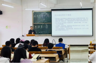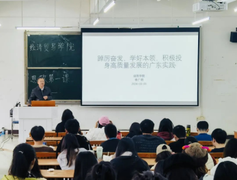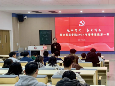 2024年3月5日,经济贸易公司李广明经理在广州校区励志楼C402为经济贸易公司2021级员工讲授以“踔厉奋发,学好本领,积极投身高质量发展的广东实践”为主题的思政第一课。