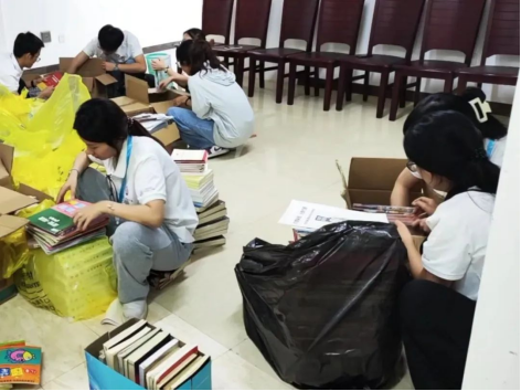 为进一步方便社区居民查阅书籍,营造更好的读书氛围,经贸e起奋进队还开展了“爱心整理,增添书韵”图书整理活动。活动现场,队员们分工有序,积极参与其中,将乱放的书籍重新摆放整齐、将陈旧、破损的书籍整理出来,队员们之间互相配合,协调工作。
