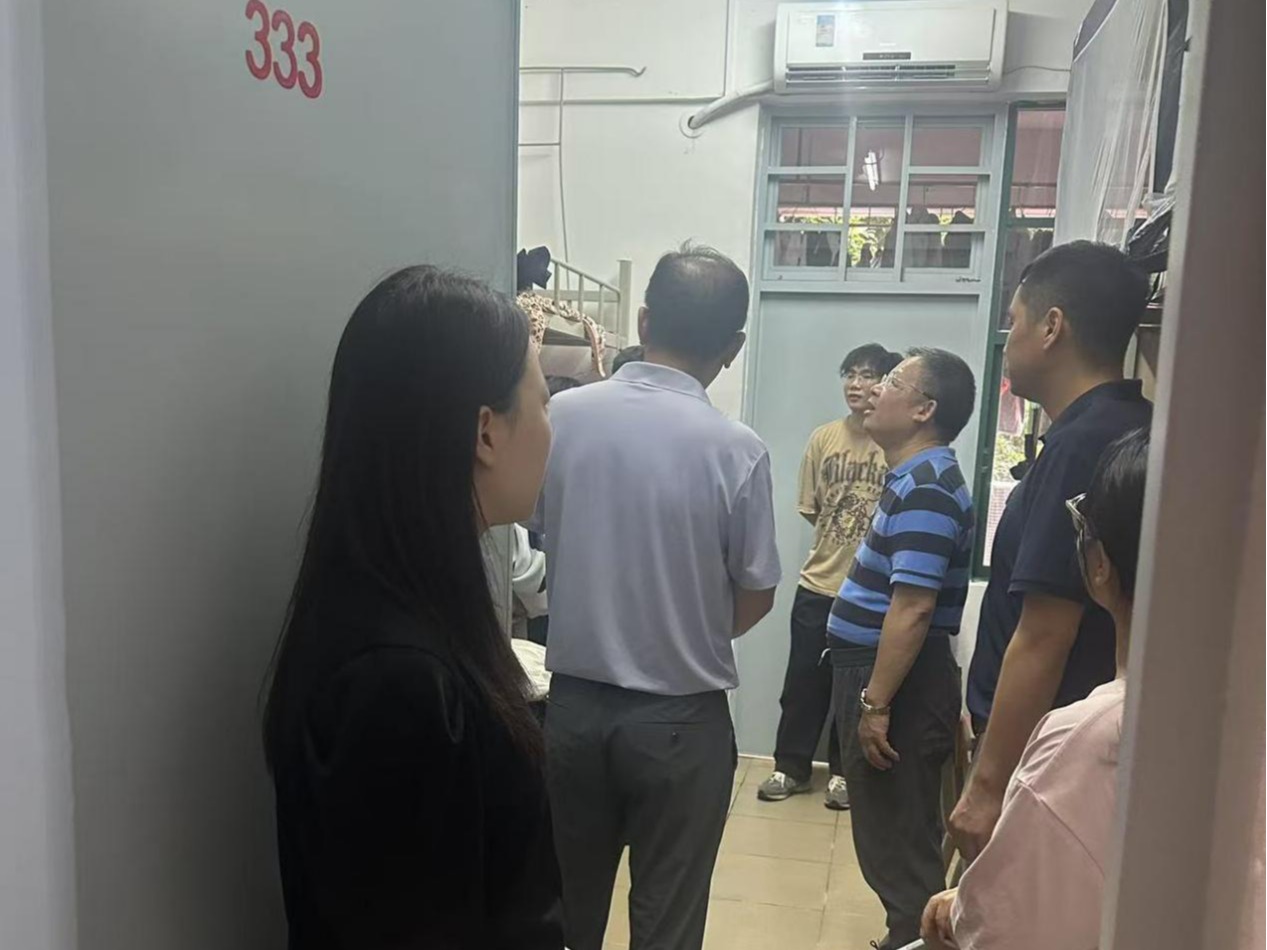 2025年7月2日下午,伟德国际1946经理李广明、副经理李伟、学工办主任李鑫及广州校区全体辅导员走进员工宿舍,与同学们亲切交流,了解他们的学习生活情况,并送上公司的关怀与问候。