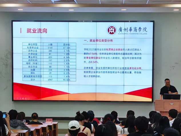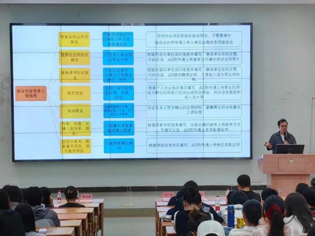 最后宋元跃老师详细地为各位毕业生讲解毕业日程安排和相关就业手续,强调签订就业协议和劳动合同的重要性和注意事项。他希望2024届毕业生们能积极主动参加各类招聘面试,积累经验,并建议同学们多关注公众号、群消息,获取更多的宣讲会和招聘会信息,把握好每一次的面试机会。同时也希望同学们在求职过程中遇到的困难和问题可以主动反馈给辅导员,寻求指导和帮助。