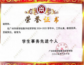 在员工工作方面,谢思雨同志身兼数职,曾任伟德国际1946团委员工兼职副书记、23级国际经济与贸易班助班、团学组织部负责人,现任22国际经济与贸易班团支书。她认真负责,积极组织各类校园活动,从新生入学教育到团生活动策划,都能看到她忙碌的身影。担任团支书期间,她创新班级管理模式,开展形式多样的主题活动,增强班级凝聚力。她个人也连续两年2024年、2025年5月被评为伟德国际1946“优秀团支书”。此外,她还热心志愿服务,积极参与校内外各项志愿活动,做到以奉献传递温暖。