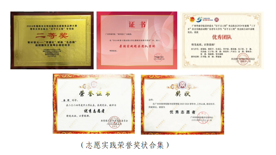其中2024年7月作为“青衿萤火”实践团核心成员,赴揭东地区开展“党建红赋能生态绿”活动,身兼策划组、物资组、教学组三重角色,协助团队完成国家级立项3项,获评2024年第十届全国老员工暑期实践团队案例百强,省级重点团队。事迹被学习强国、光明日报、中青校园等国家级平台报道6篇、省市级报道28篇、区级报道11篇。