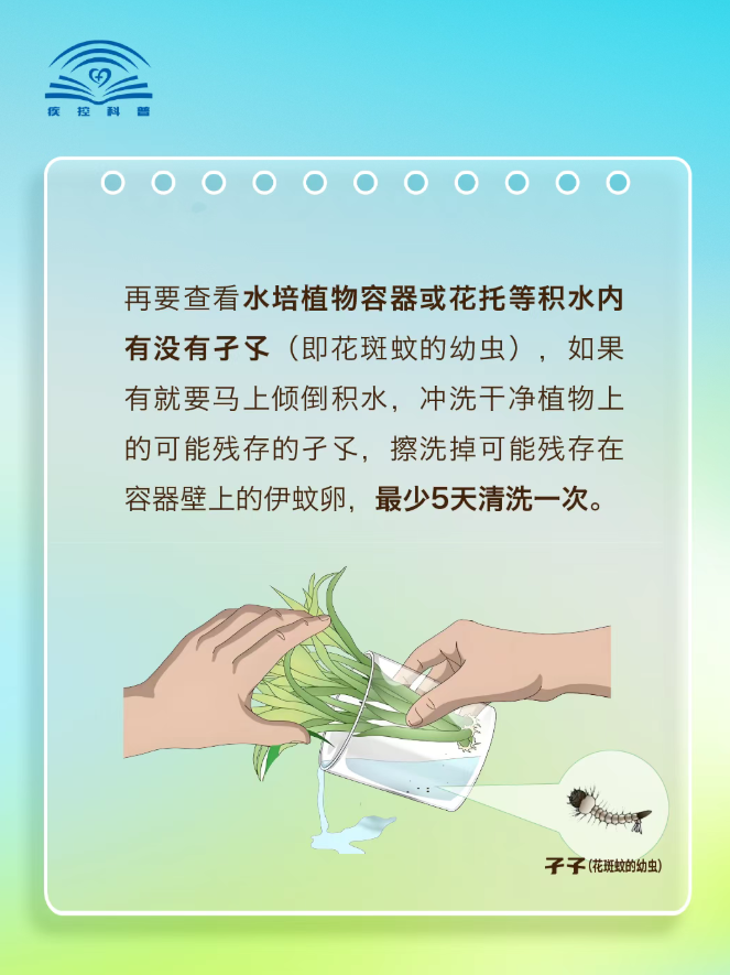 清积水、灭成蚊、防叮咬没有积水就没有蚊虫孳生